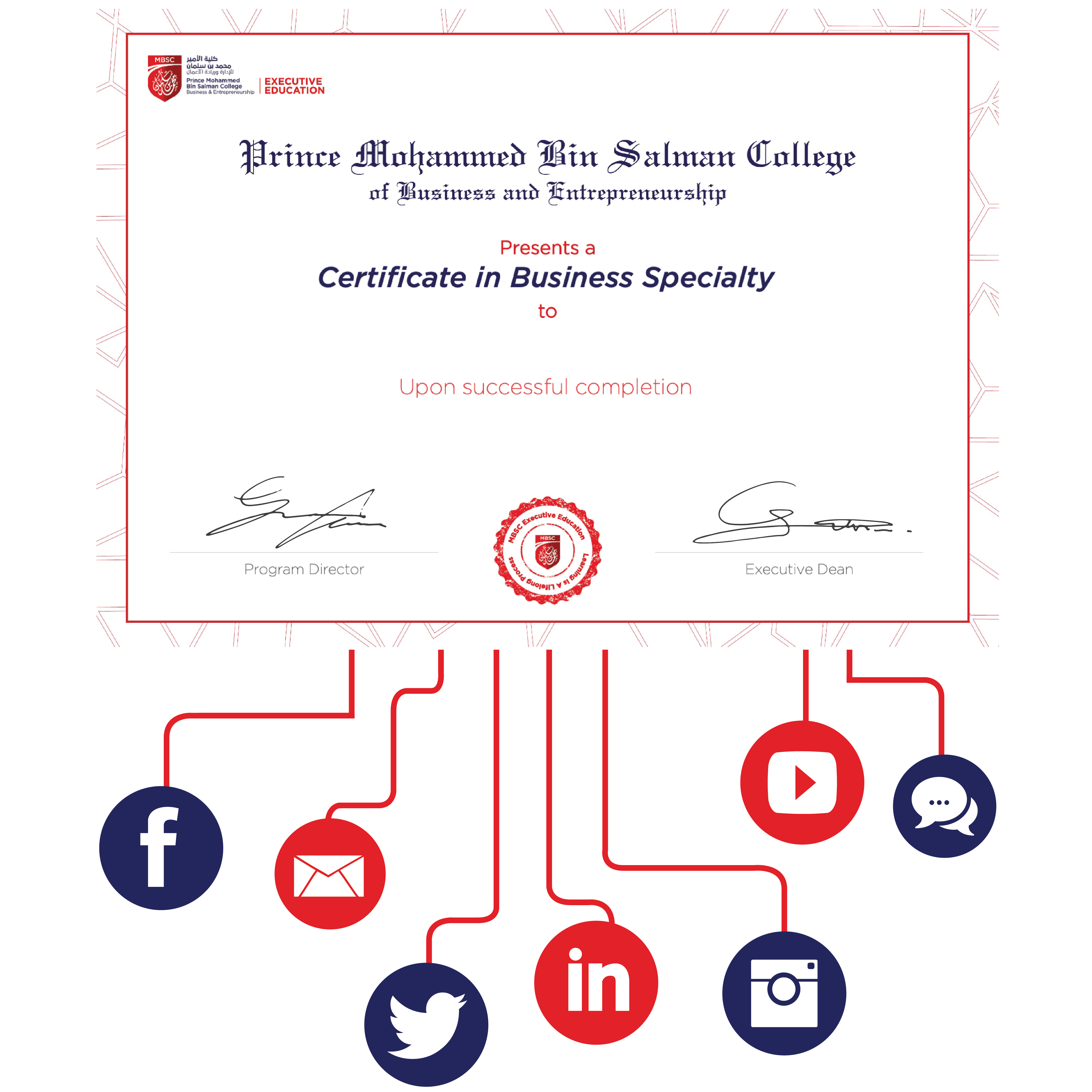 This certificate program does not grant academic credit or a degree from Prince Mohammed bin Salman College of Business and Entrepreneurship (MBSC).